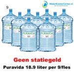 Afname van 9 flessen van 18,9 Liter Puravida zuiver drinkwater € 13.75 per fles